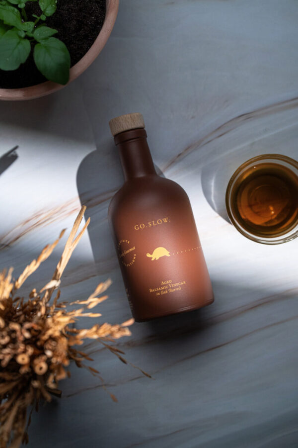 Our aged balsamic vinegar has slowly matured and its rich flavor, coupled with an aftertaste brewed up in the oak barrel, comes to elevate your culinary creations and salads.